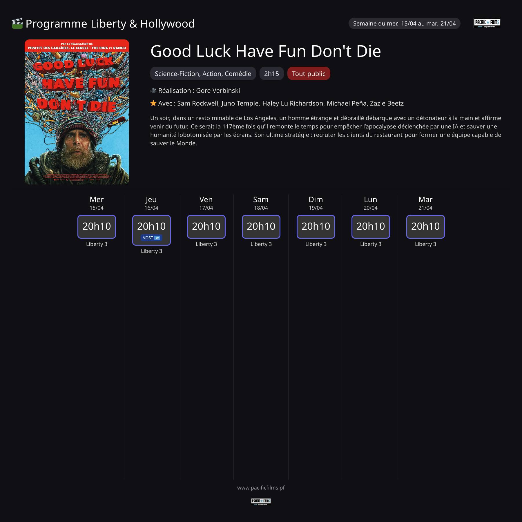 MER / VEN / SAM / DIM / LUN / MAR : 20h10