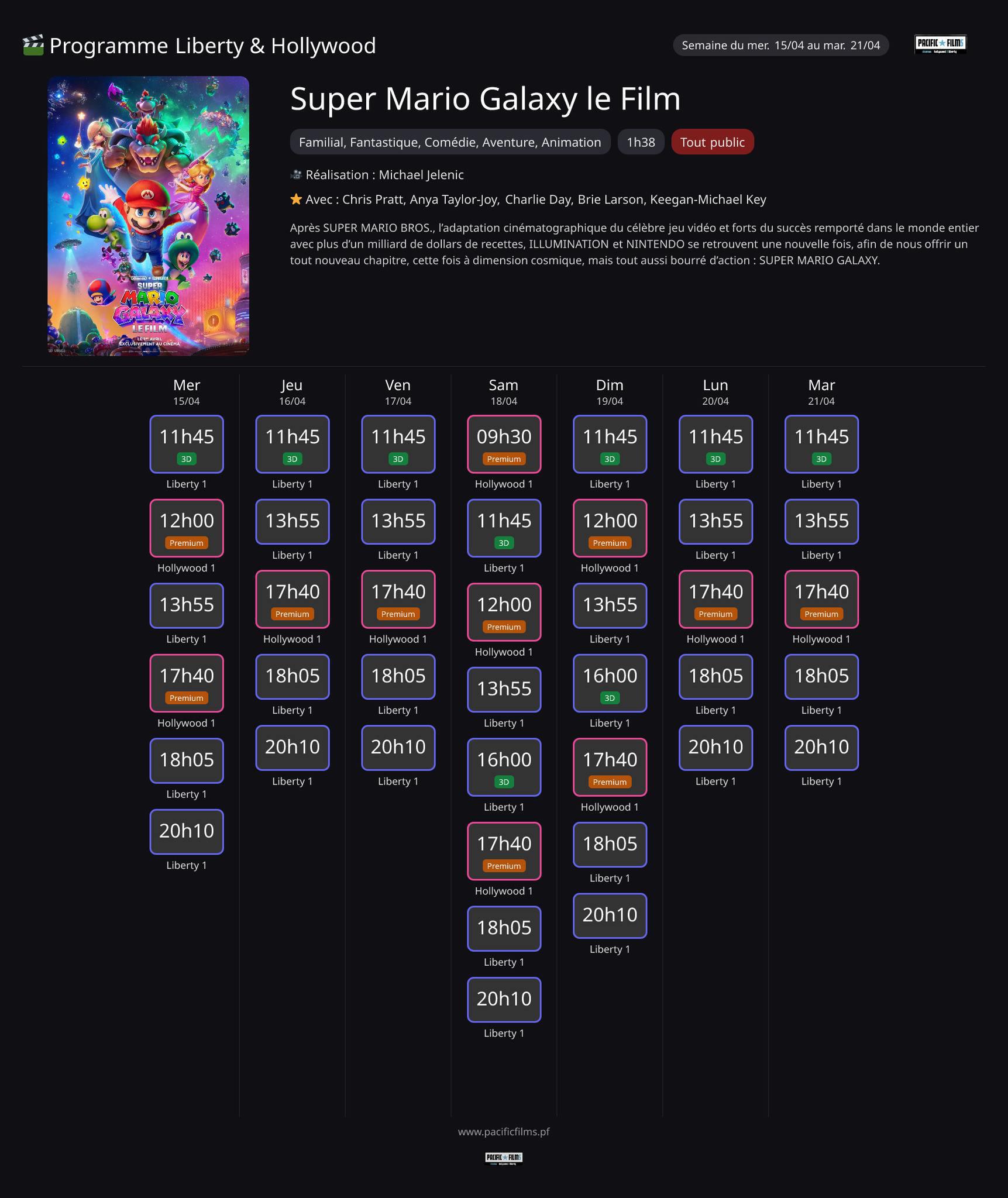 Après SUPER MARIO BROS., l’adaptation cinématographique du célèbre jeu vidéo et forts du succès remporté dans le monde entier avec plus d’un milliard de dollars de recettes, ILLUMINATION et NINTENDO se retrouvent une nouvelle fois, afin de nous offrir un tout nouveau chapitre, cette fois à dimension cosmique, mais tout aussi bourré d’action : SUPER MARIO GALAXY.